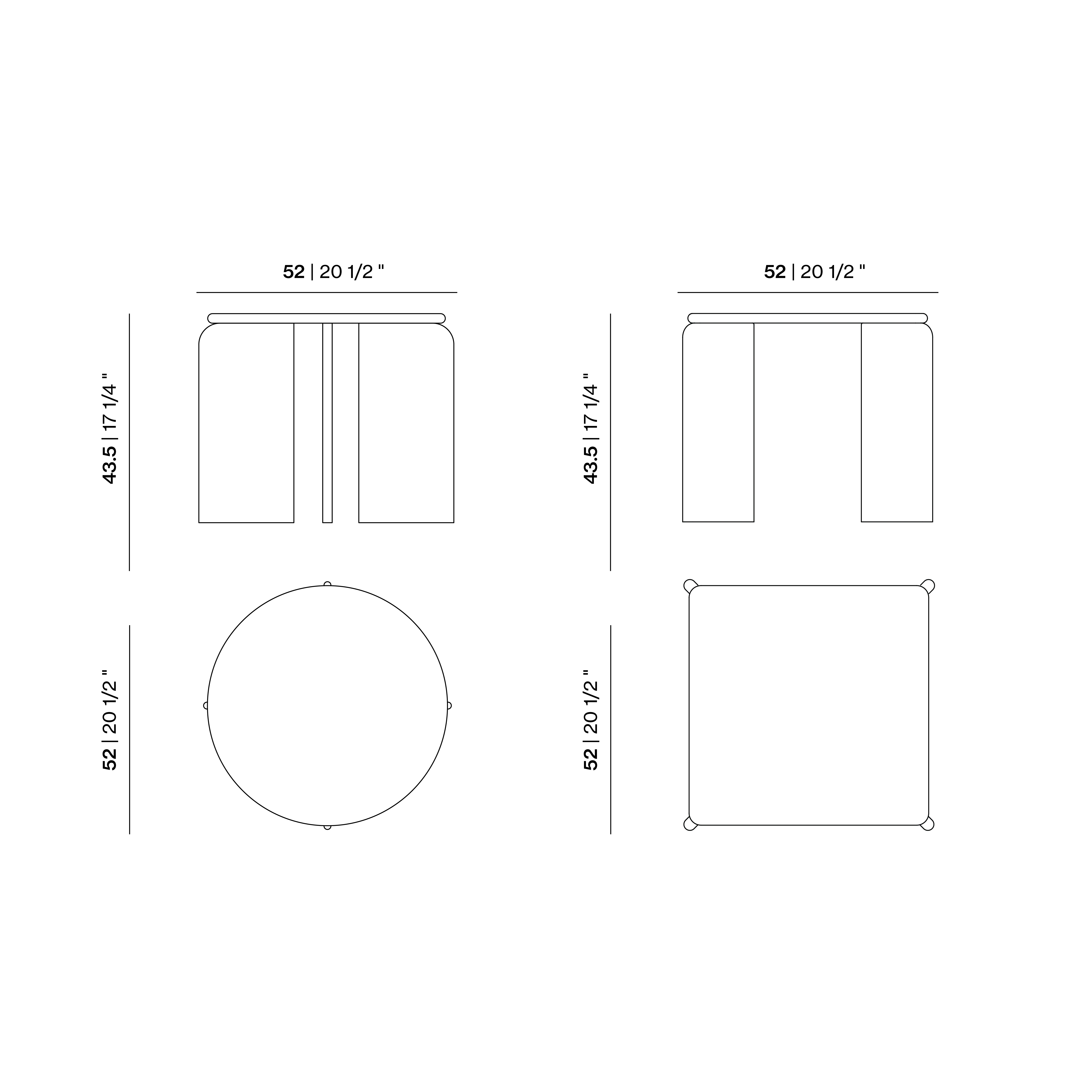 This coffee table is available in both round and square shapes, from a low coffee table to a high side table, with the smallest version also doubling as a stool. Be sure to explore our round or rectangular dining tables from the Soft collection as well.