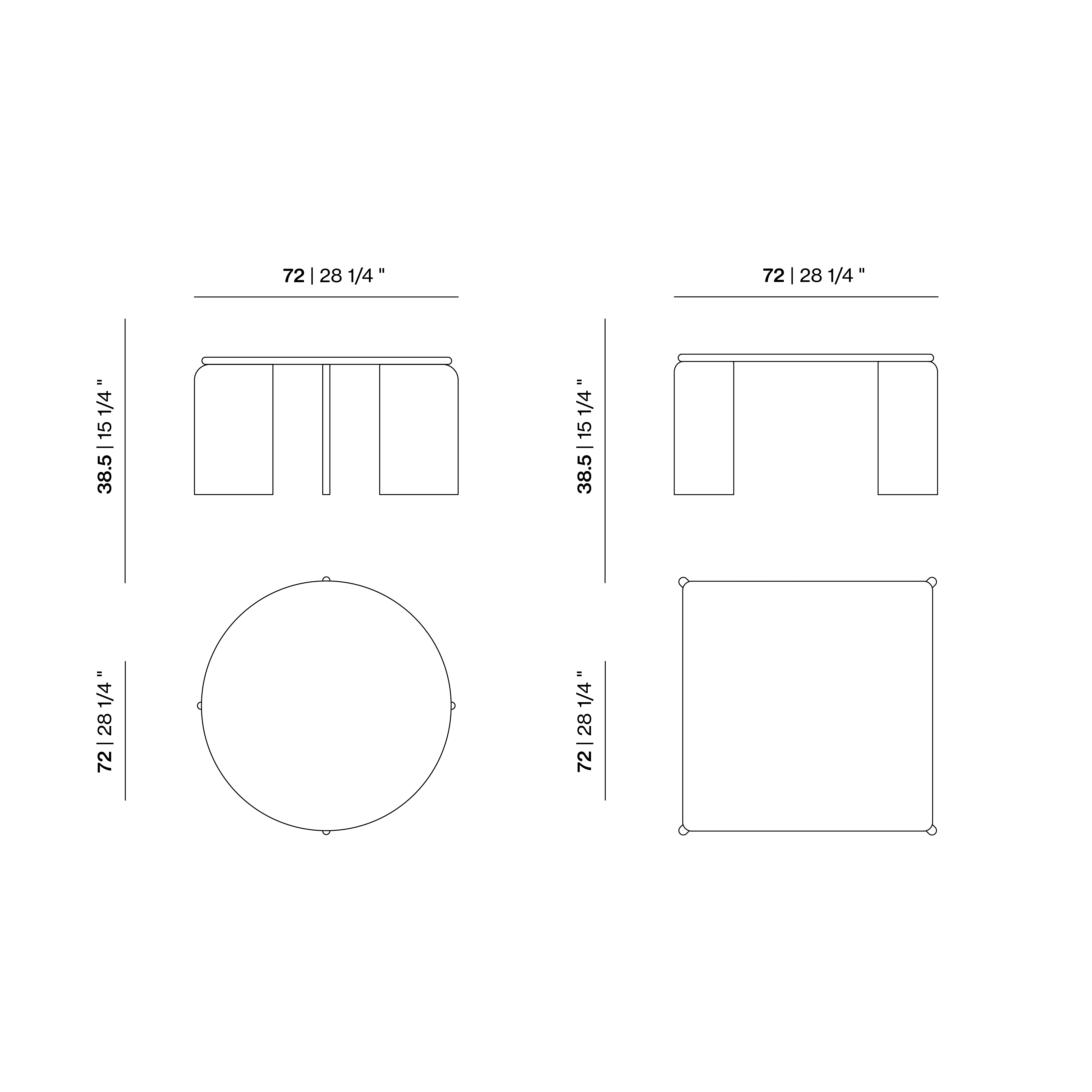 Slim or solid, round or rectangular – it all depends on your perspective. Viewed from different angles, the Soft coffee table reveals multiple designs in one.