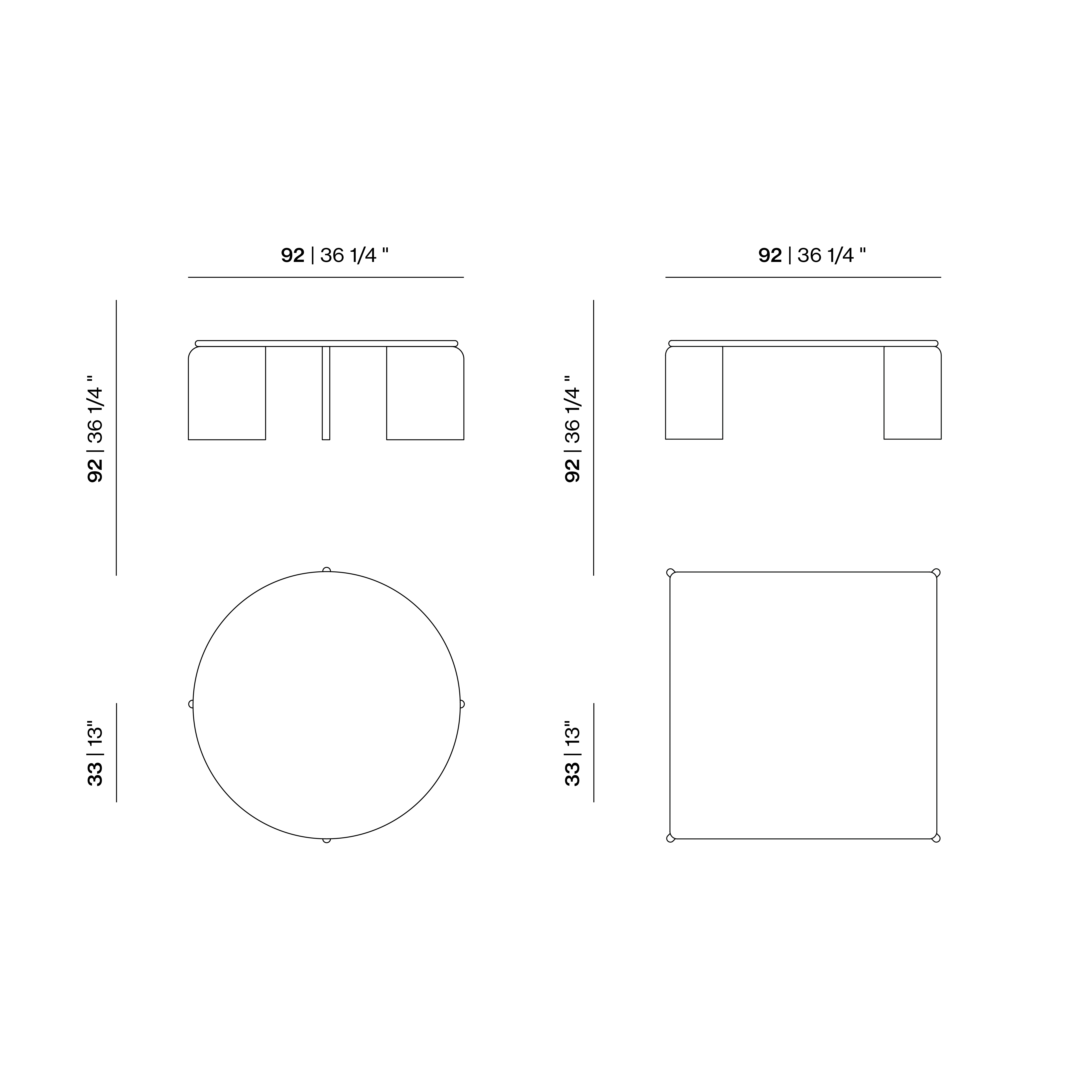 This coffee table is available in both round and square shapes, from a low coffee table to a high side table, with the smallest version also doubling as a stool. Be sure to explore our round or rectangular dining tables from the Soft collection as well.