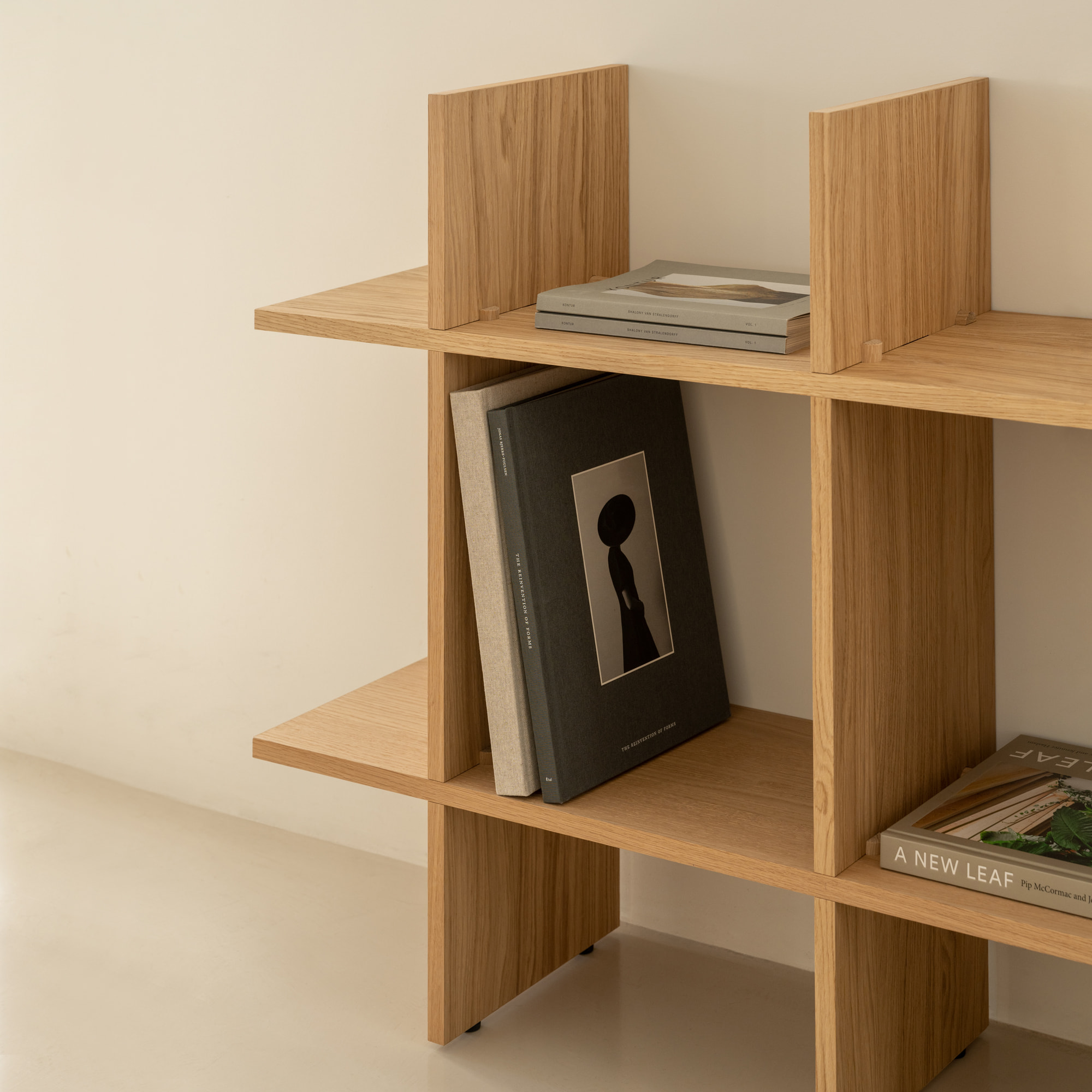 The new Column Cabinet is the perfection of simplicity in design and construction. It’s back to basics with the celebration of the square shape and its endless repetition. Unique to this cabinet is the use of oak wedges and half-lap joints to hold it together, removing the need for metal parts, screws, and tools altogether. This minimalistic yet functional cabinet is available in 25 different dimensions depending on your needs or preferences; it can take the form of a tall and slim bookshelf, a low and wide cabinet, or a large statement piece in your living room.