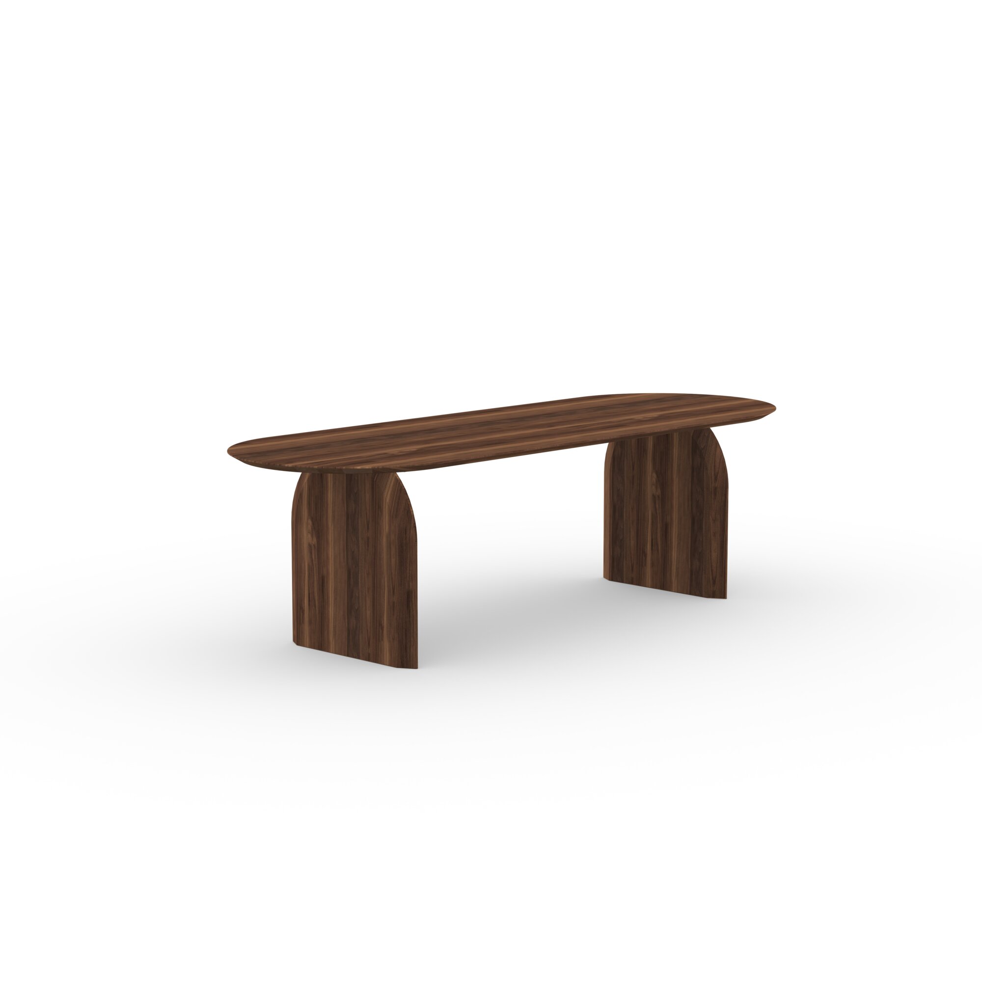The Slot table features a wooden frame with a flat oval design that looks solid and full of character. It is a true statement piece in any space, with a stylish appearance. Thanks to its unique shape, the Slot table grabs attention without appearing heavy or massive, making it a perfect choice for a dining area or meeting room.