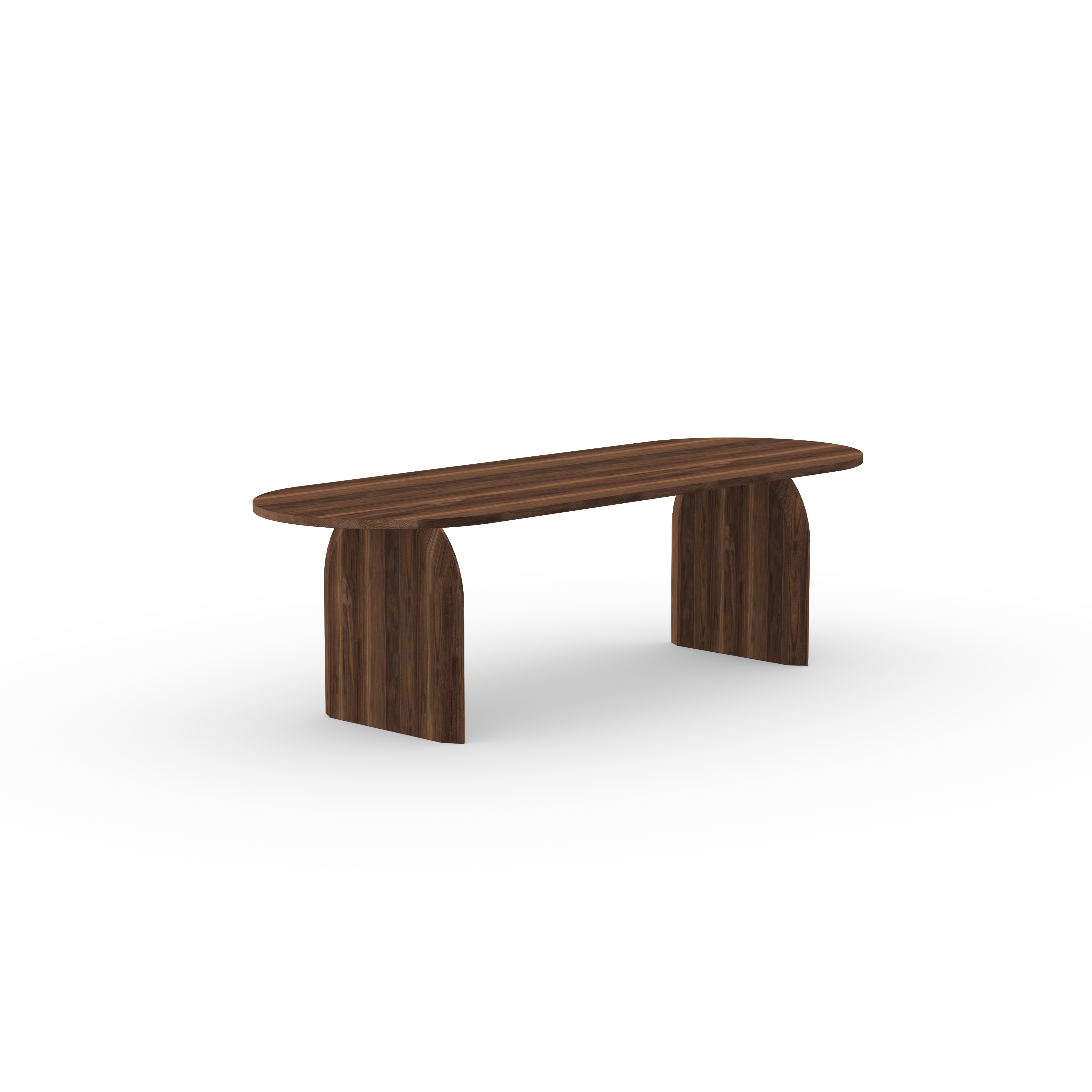 The Slot table features a wooden frame with a flat oval design that looks solid and full of character. It is a true statement piece in any space, with a stylish appearance. Thanks to its unique shape, the Slot table grabs attention without appearing heavy or massive, making it a perfect choice for a dining area or meeting room.