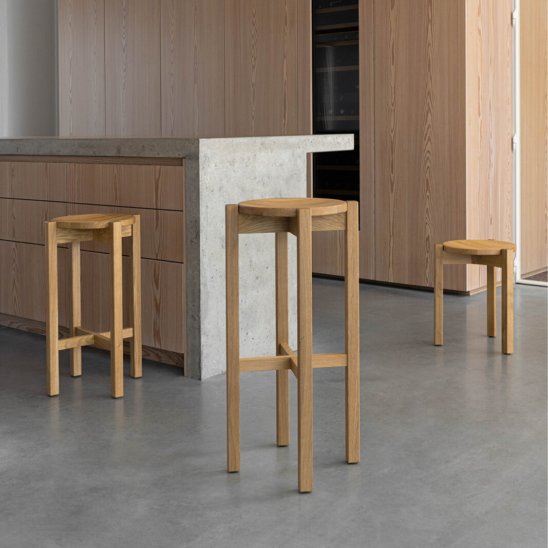Distinguished by its high-quality craftsmanship, the strong and stable Base Stool is a timeless addition to any interior. This neat and functional design is made of high-quality oak wood and constructed at the ideal height to use as a bar stool.