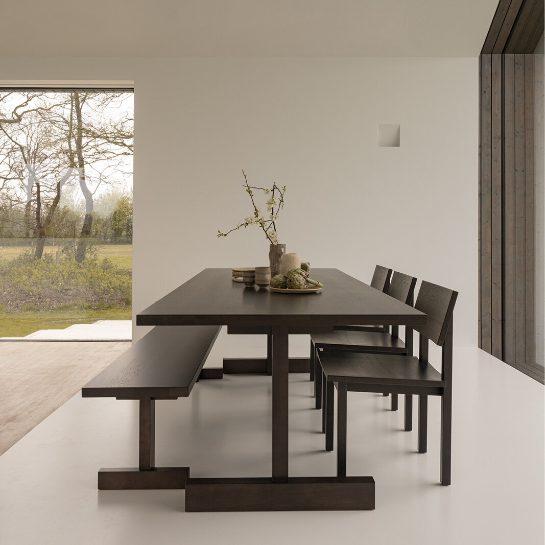 Het minimalistische design van De Base Chair straalt vakmanschap uit. De stoel, gemaakt van FSC-gecertificeerd eikenhout, is volledig in verhouding en afgewerkt met subtiele ronding in de rugleuning en zitting die je extra zitcomfort geven. Zijn verfijnde uitstraling en massief houten afwerking maken hem een statement-piece in elk interieur.
