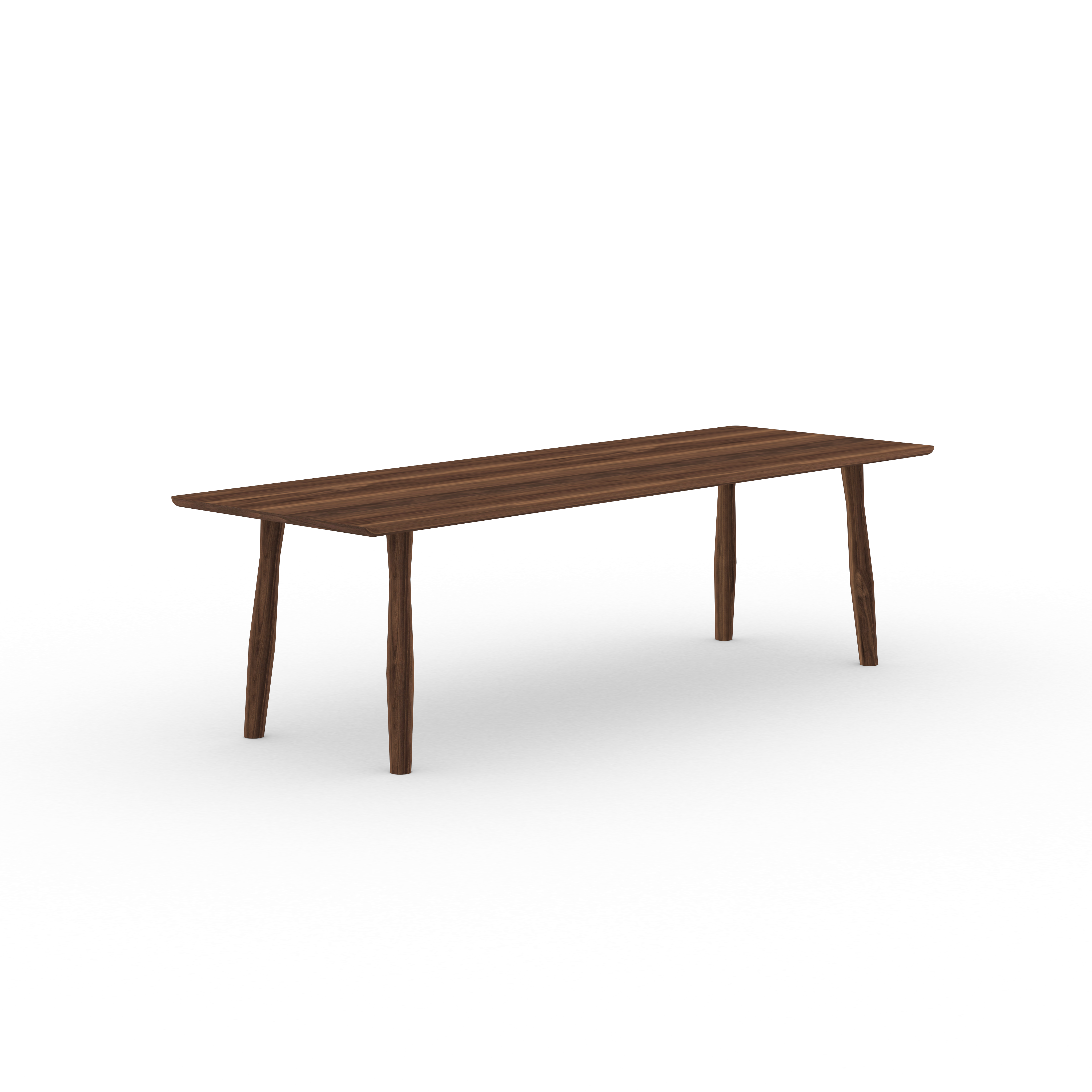 Deze minimalistische eettafel oogt strak en modern, maar voelt zeker niet afstandelijk. Dankzij het gebruik van massief hout met een ambachtelijke afwerking straalt het ontwerp warmte en karakter uit.