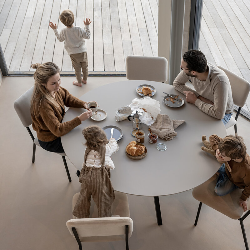 • Ronde Design dining table | New Classic Quadpod Steel white powdercoating | Oak hardwax oil natural light | Studio HENK |