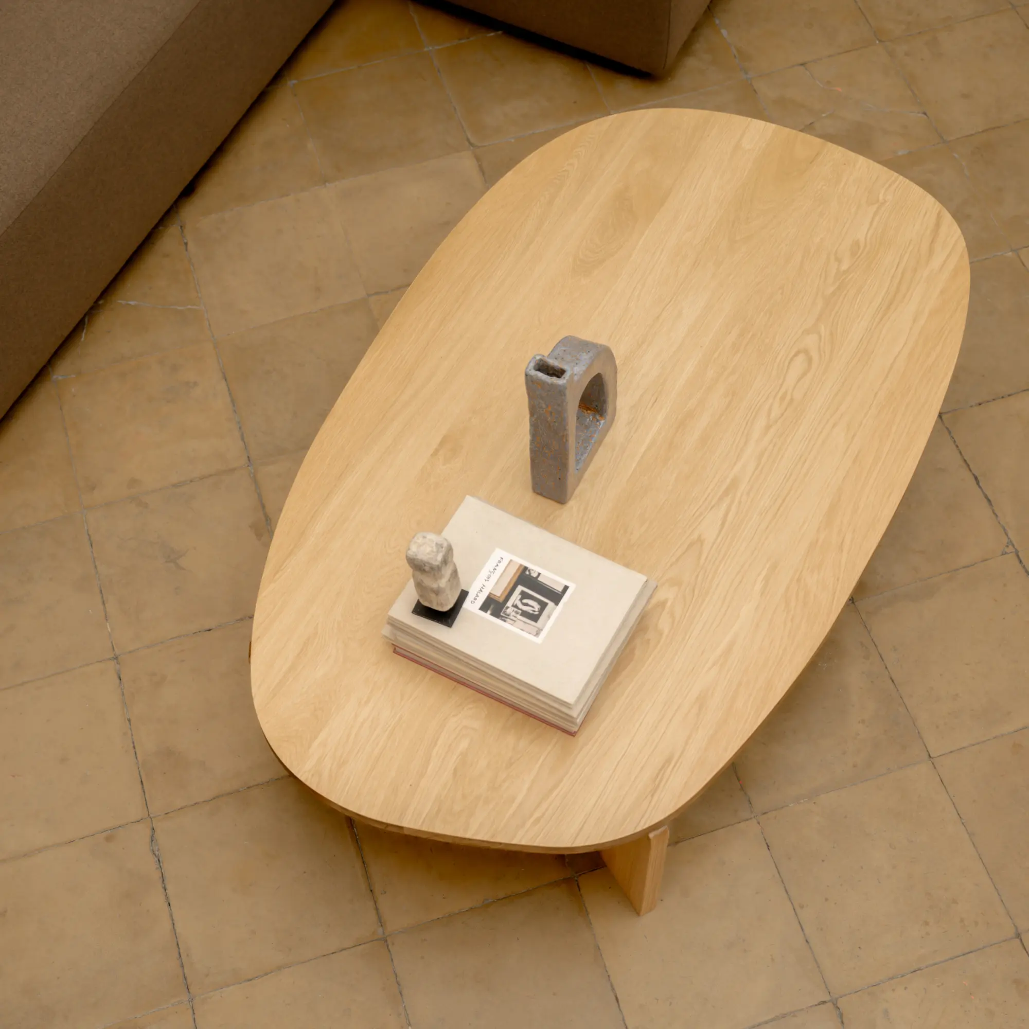 De verhoudingen geven de tafel een duidelijke plaats in de ruimte: centraal, stabiel en uitnodigend. Met ruimte voor koffietafelboeken, een dienblad of alles wat je binnen handbereik wilt houden.